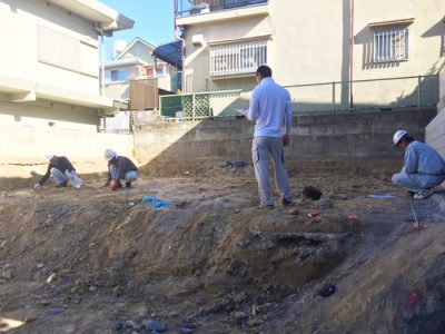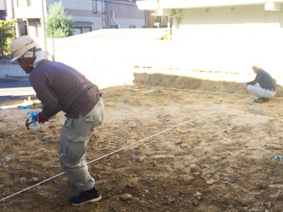 地盤調整の結果、地盤が弱いため地盤改良が必要になった。