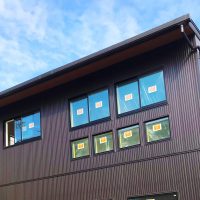 黒のサッシを装着しご満悦な家。
