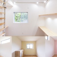 さて、前回は1Fまでツアーしたので、2Fに潜入だ。使い方はユー次第。階段を上がって、ふぁっとなるスペース『家族共用フリールーム』だ。右側はシェルフ兼カウンターだ。荷物を置いてもヨシ。勉強机にしてもヨシ。寝てもヨシ。