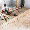 もっというと、右窓の先にはバルコニーの裏天井になっているのだが、そこにも杉の羽目板を設置する予定だ。デザイン的な理由もあるが、これによりリビングが広く見える効果もあるわけだ。