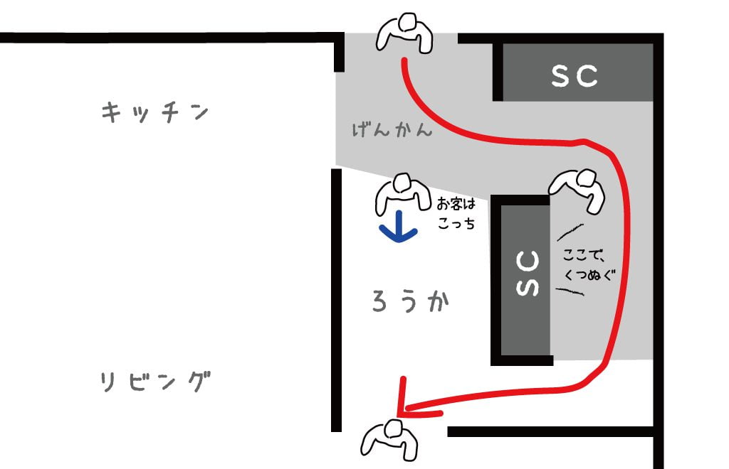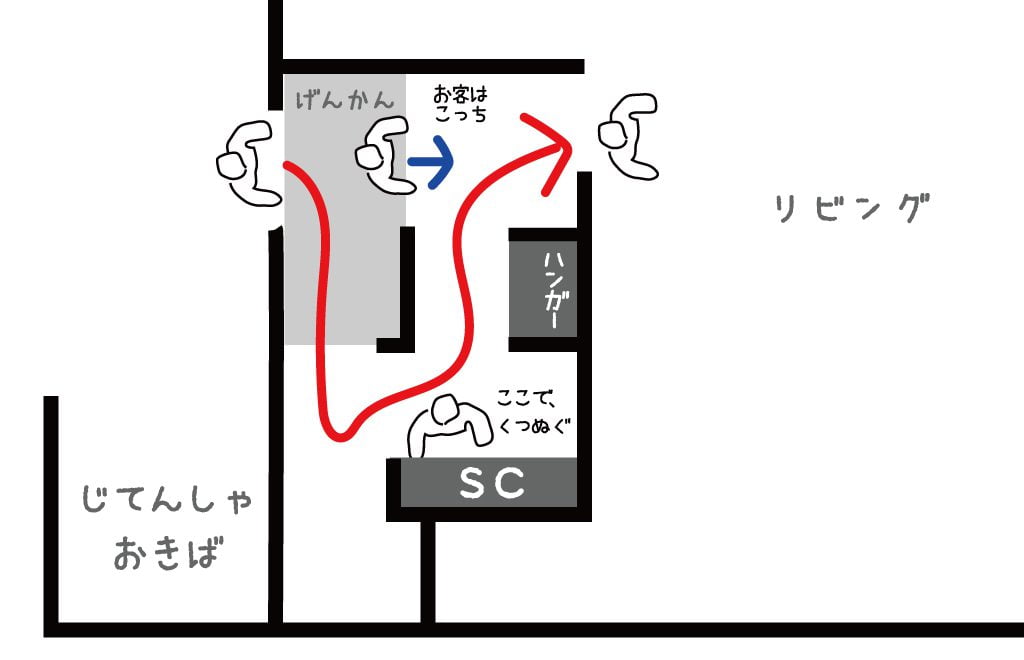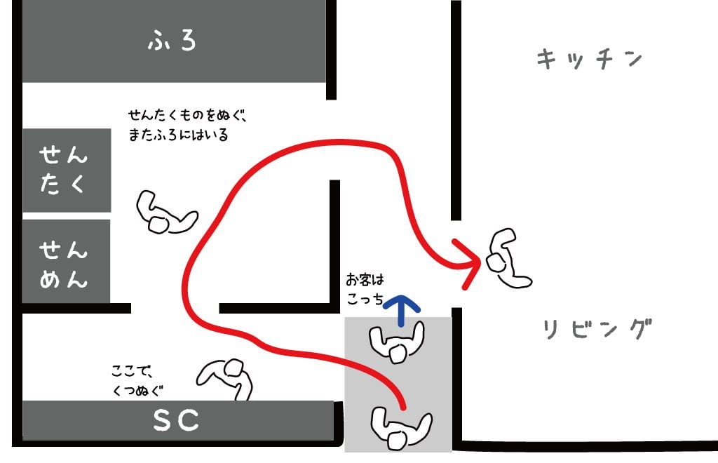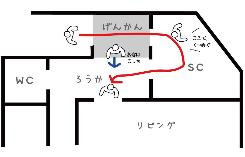 2. そのまま家に上がっていただく。