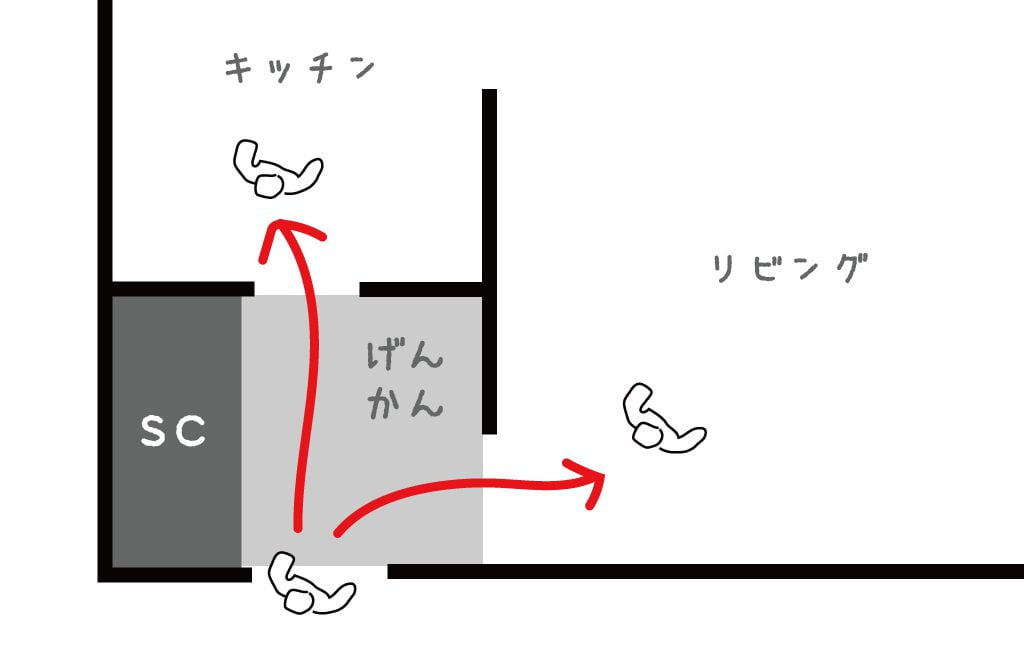 玄関を開けると2つの入り口が目の前に。