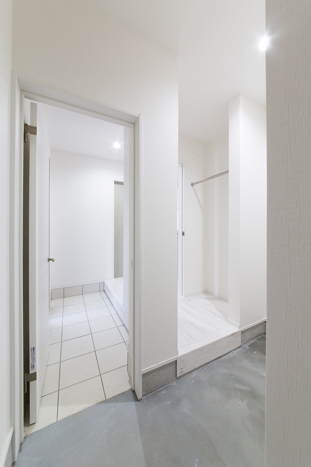 右側にはハンガーバーが設置されたスペースがある。