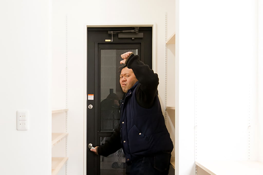 2. 向かって左のドアからシューズクロークに入り、